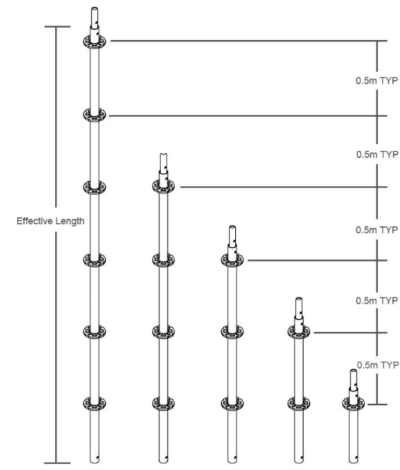 High-Tensile Steel: Constructed from high-grade steel (in OD60mm or OD48mm), offering approximately twice the strength of traditional carbon steel scaffolds.